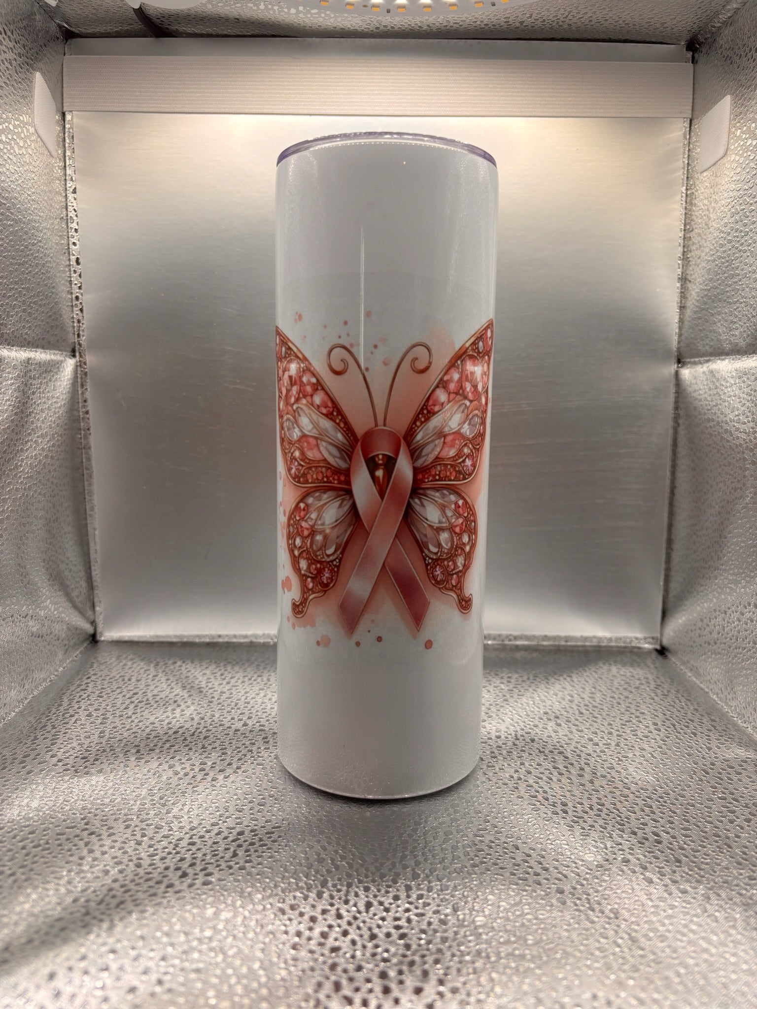 Breast cancer ribbon butterfly 20oz tumbler