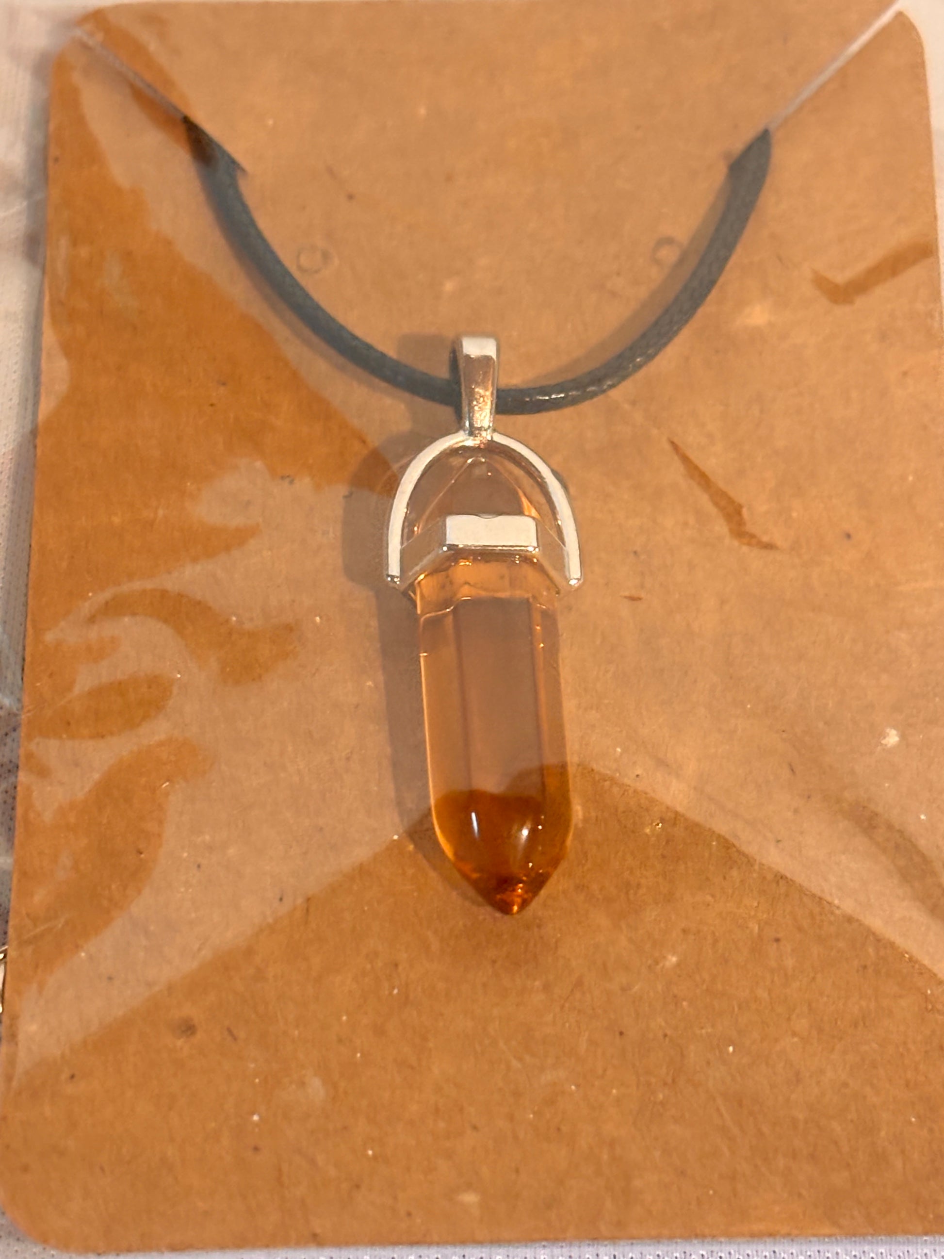 This handcrafted necklace features a striking brown crystal-like stone, carefully selected for its unique texture and rich color. Expertly designed to highlight the natural beauty of the stone, it offers a sophisticated accessory that complements both casual and formal attire. Durable and lightweight, this necklace provides lasting elegance and a distinctive touch to your jewelry collection.