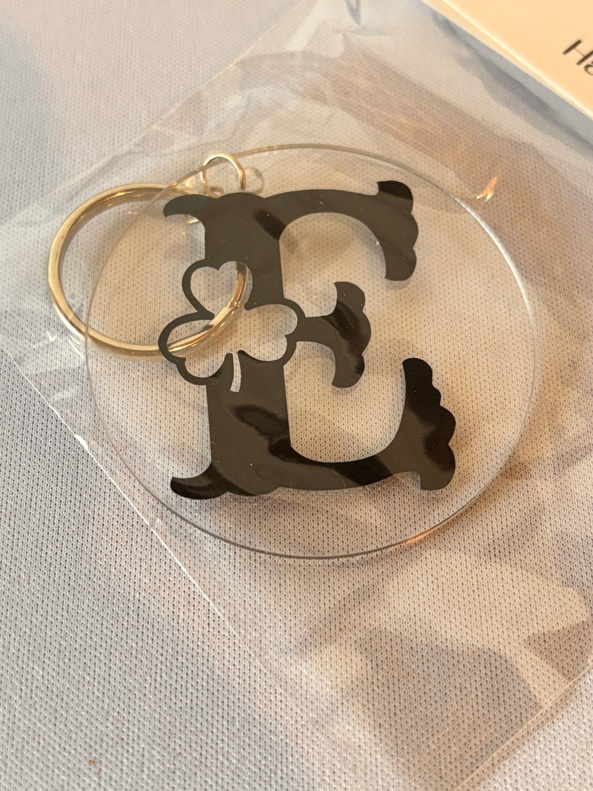 This handmade vinyl keychain features a stylish letter "E" adorned with a charming shamrock design, combining personalization with a touch of luck. Crafted with durable materials, it offers both aesthetic appeal and practical use for keeping your keys organized. Ideal for those seeking a unique accessory that reflects personality and good fortune.