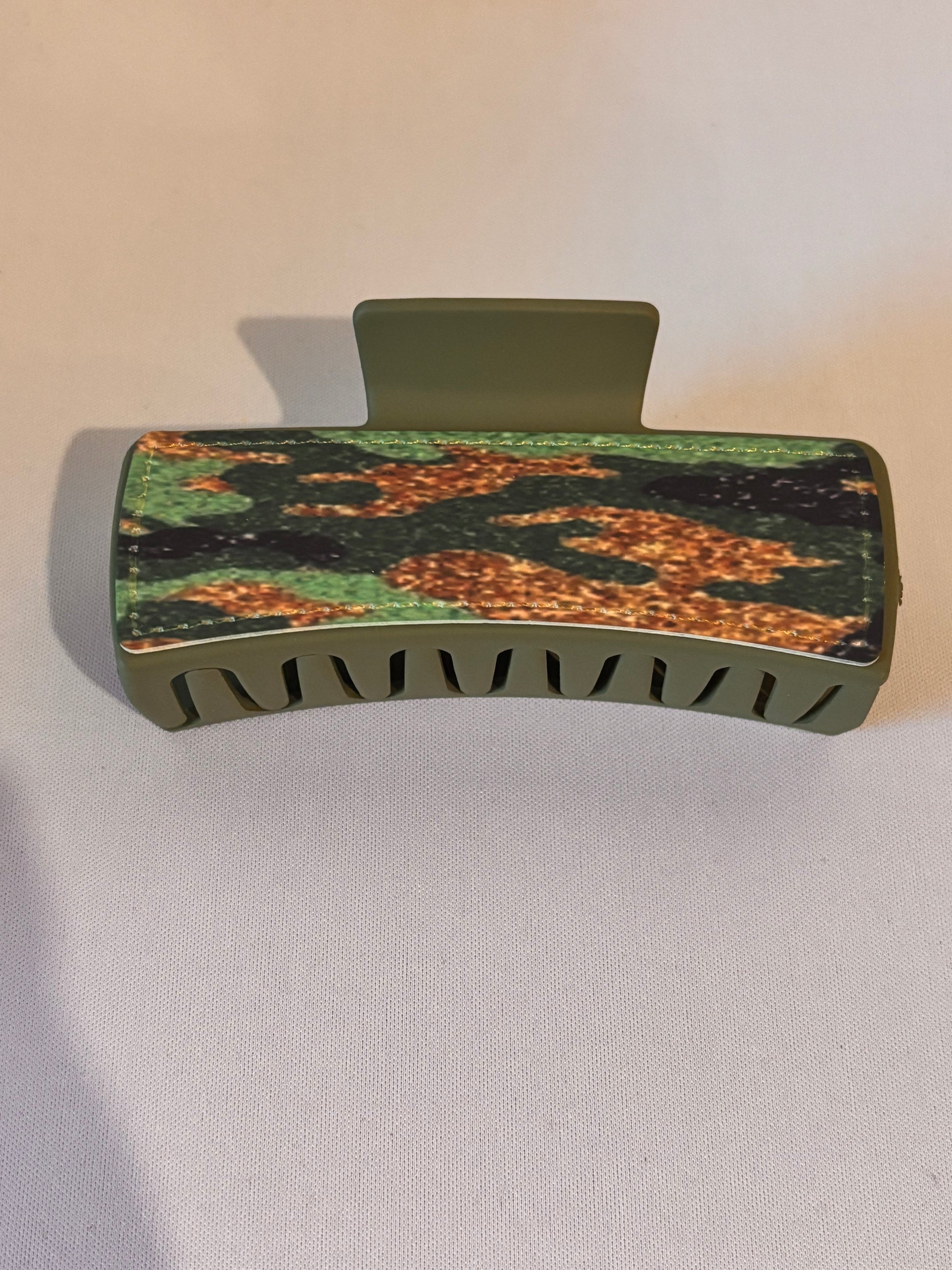 This Green Camo Sublimation Hairclip combines durable construction with vibrant, fade-resistant camouflage design achieved through advanced sublimation printing. Expertly crafted to securely hold hair in place, it offers both style and functionality for everyday wear or outdoor activities.