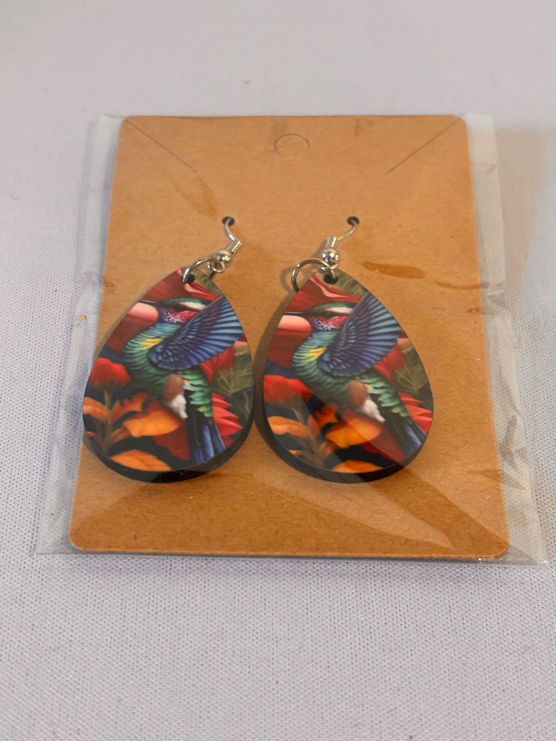 These handmade hummingbird sublimation earrings showcase intricate craftsmanship and vibrant, lasting colors. Designed for those who appreciate detailed artistry, they offer a lightweight and comfortable wear while adding a unique, nature-inspired touch to any outfit. Perfect for gifting or personal collection, these earrings combine durability with elegant design.