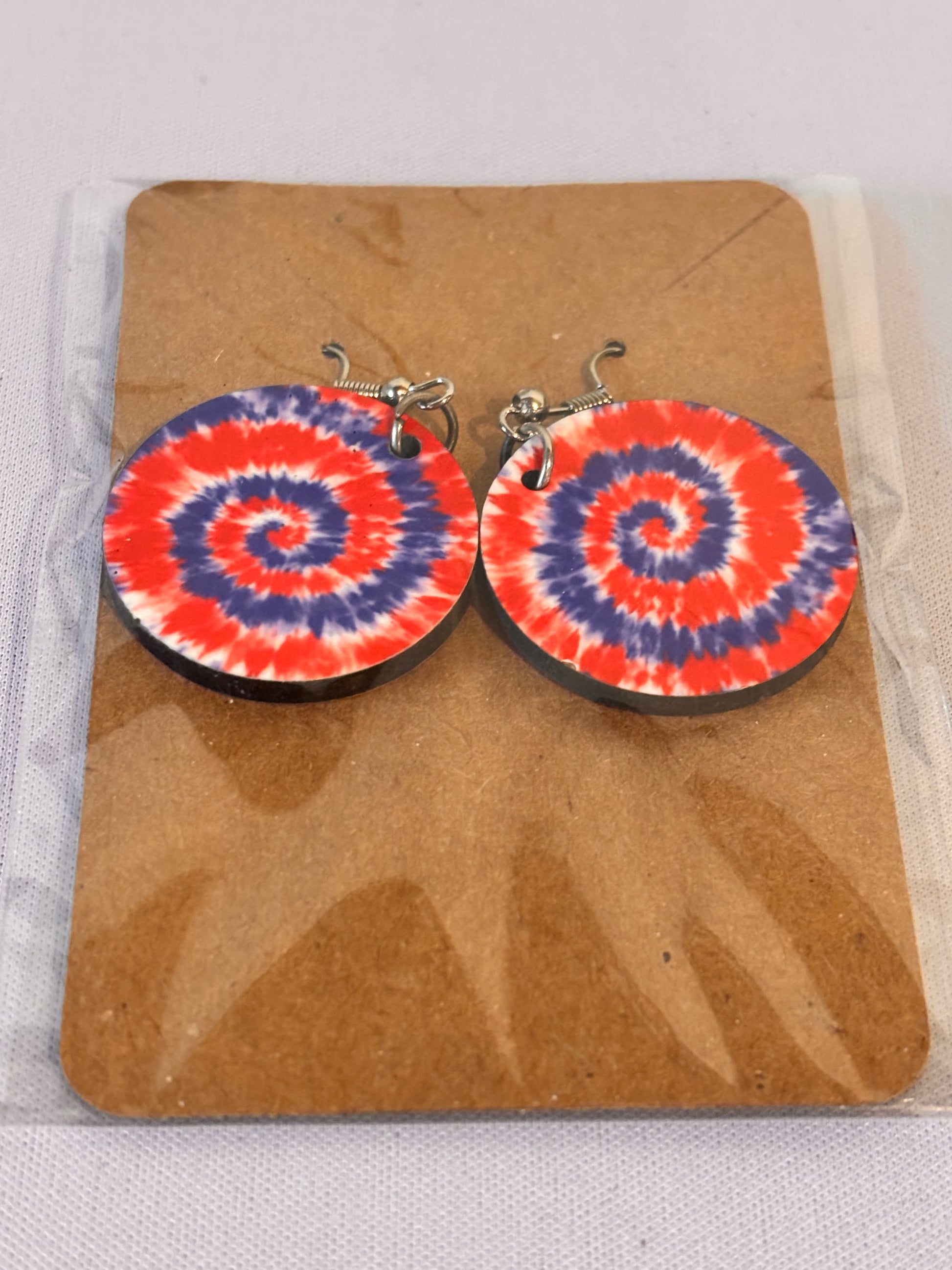 These handmade earrings feature a vibrant red, white, and blue tie-dye sublimation design, offering a unique and eye-catching accessory. Crafted with care, they combine artistic flair with durable materials, making them perfect for adding a patriotic touch to any outfit. Ideal for those who appreciate distinctive, expertly crafted jewelry.